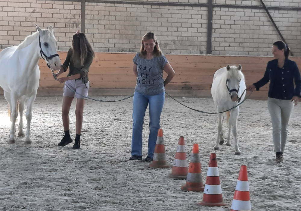 Die Arbeit mit dem Pferd geschieht nur vom Boden aus- in ruhiger und entspannter Atmosphäre. Reit- und Pferdekenntnisse sind nicht erforderlich, da nicht geritten wird.